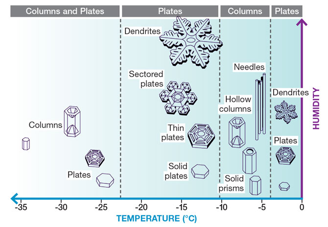 SNOWFLAKE SNAPSHOTS: Snowflakes are tiny ice crystals—solids whose molecules are arranged in a repeating pattern.