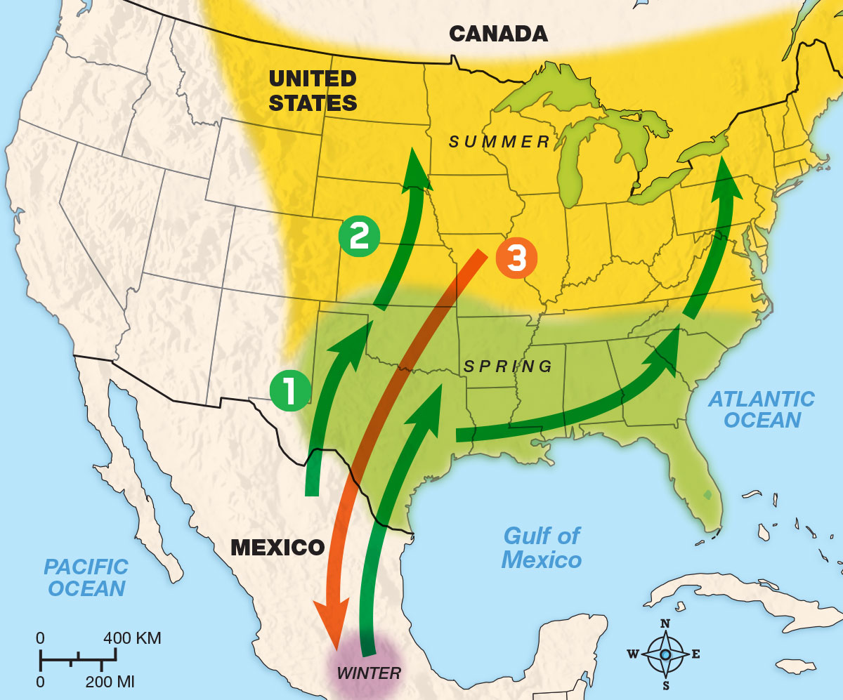 The monarchs arrive in Mexico at the time of a big yearly celebration. It is Día de los Muertos, or Day of the Dead. It takes place on the first two days of November. During this holiday, many families in Mexico visit cemeteries. They want to honor the memories of deceased relatives and friends. So they light candles and leave food offerings. Papier-mâché skeletons, marigold flowers, and sugar skulls are symbols of the holiday. So are monarchs. Some people believe the butterflies carry the souls of departed loved ones, says Lucía Romero Vásquez of the Communal Land Council. This belief about migrating butterflies goes back to the Aztecs. They lived in central and southern Mexico from the 1300s through the early 1500s.